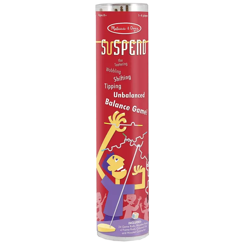 Réf. : PIX004 Suspend est un jeu d'équilibre et de dextérité dans lequel les joueurs alimentent à tour de rôle une structure verticale. Le premier qui n'a plus de baguettes gagne la partie.