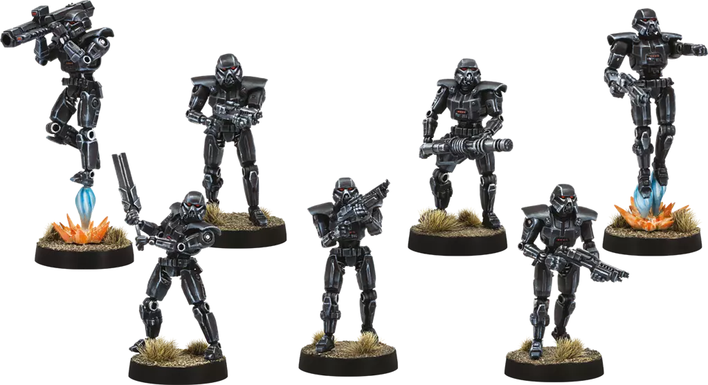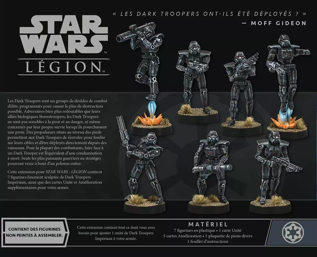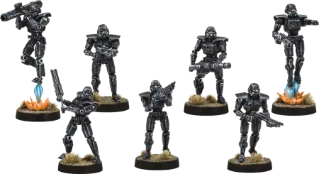 En tant que nouvelle unité lourde impériale, les sept figurines de Dark Trooper de cette extension offrent aux joueurs une variété de moyens de terrifier leurs adversaires, y compris un XS-IV Assault Cannon Trooper, un SM-9 Frag Launcher Trooper, et un Mertalizer Trooper. En plus de leurs options d'armes standard et lourdes, les Dark Troopers sont également accompagnés d'une nouvelle amélioration de programmation qui offre aux joueurs un autre moyen de personnaliser leur approche du combat.