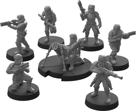 Les Shoretroopers sont recrutés parmi l’élite des escadrons de Stormtroopers. Rompus aux combats dans des environnements exotiques, ils sont également entraînés à supporter les conditions d’une guerre de tranchées. Ce sont des experts, capables de contrer la guérilla des Rebelles.