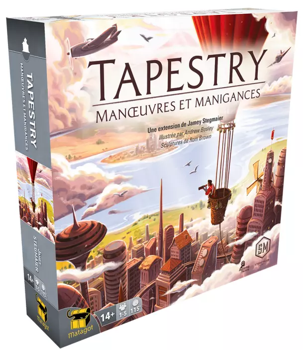 Réf. : MATTAP002785 Dans Tapestry, les joueurs ont la lourde tâche de créer et de développer une civilisation fictive. Partant du commencement de son ère jusqu'à une époque future, les joueurs devront réfléchir aux moyens de faire prospérer leur civilisation le plus efficacement possible. Quatre voies de développement sont possibles : La science, la technologie, l'exploration et les guerres. D'autres actions sont également à remplir pour gagner des points comme augmenter vos revenus ou construire une capitale. Choisissez parmi une variété de nouvelles civilisations, remplissez des objectifs uniques pour construire des monuments sur votre capitale et interagissez sournoisement avec vos adversaires dans cette première extension de Tapestry.