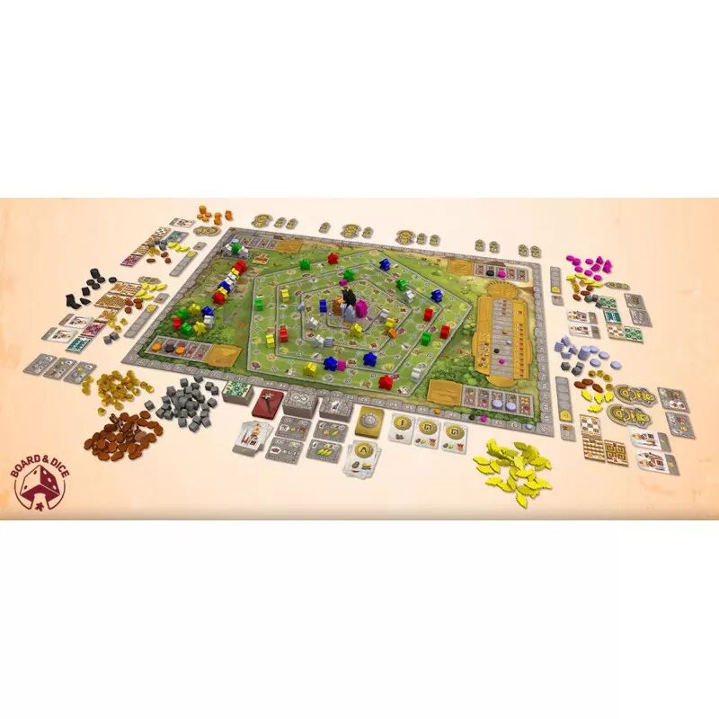 Le plateau de jeu présente une colline située dans l'ancienne capitale inca de Cusco, dont les côtés sont en terrasses et divisés en cinq sections. Au sommet de la colline se trouve la Coricancha, le temple d'or, le plus important temple de l'empire inca. Dans la Coricancha, chaque joueur a un Grand Prêtre. Sur les sections en terrasses en dessous se trouvent divers lieux de placement des ouvriers, reliés entre eux par des chemins et marqués individuellement par des symboles. À votre tour, vous devez soit placer un ouvrier sur un emplacement à l'extérieur de la Coricancha, soit choisir deux des emplacements suivants :