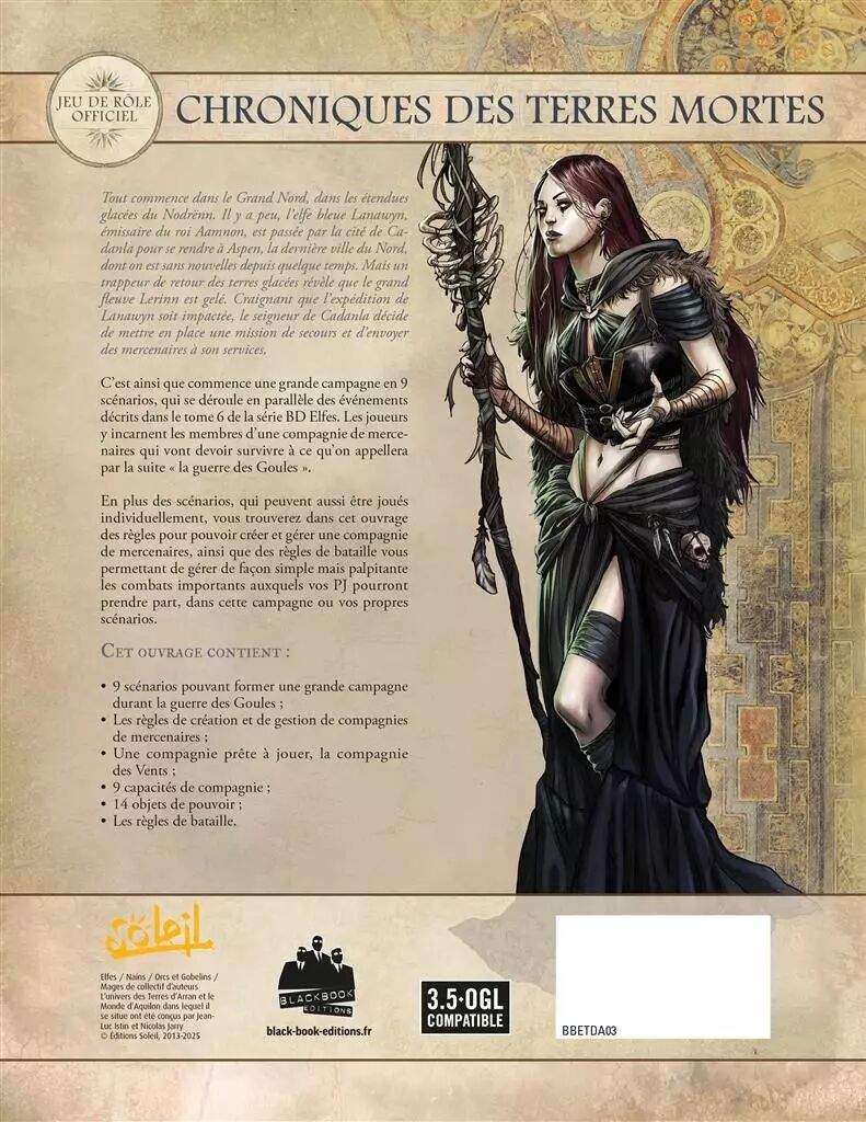 En plus des scénarios, qui peuvent aussi être joués individuellement, vous trouverez dans cet ouvrage des règles pour pouvoir créer et gérer une compagnie de mercenaires, ainsi que des règles de bataille vous permettant de gérer de façon simple mais palpitante les combats importants auxquels vos PJ pourront prendre part, dans cette campagne ou vos propres scénarios.