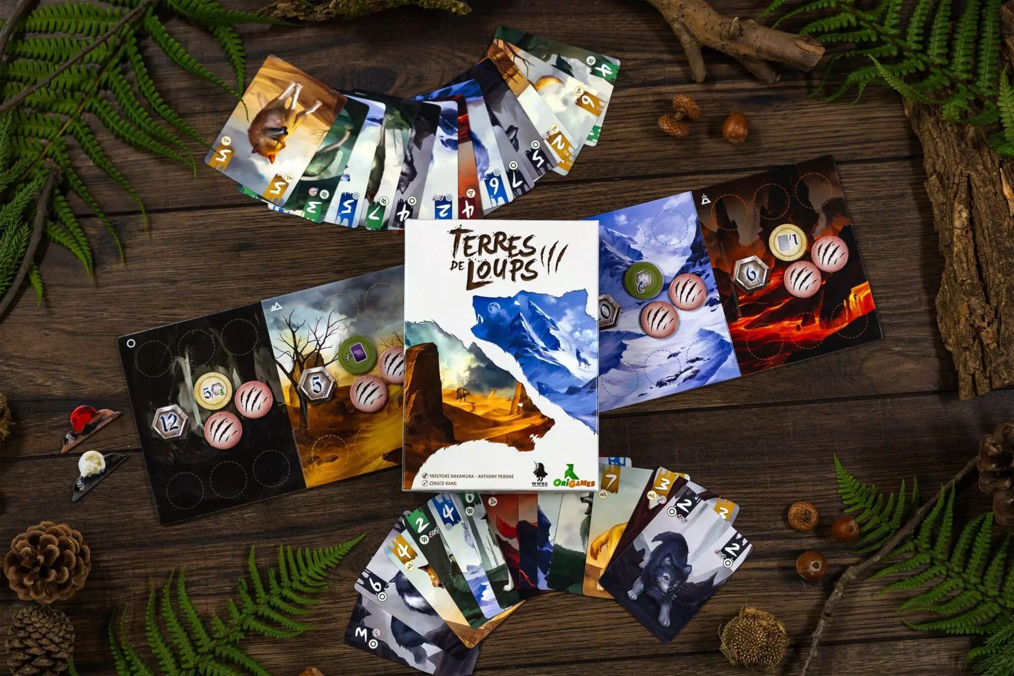 Avec trente cartes magnifiquement illustrées, un plateau de jeu compact et des jetons tactiques variés, Terres de Loups propose une vraie profondeur pour un format court. Les différentes façons de gagner des points – entre contrôle des territoires et collection stratégique de jetons – boostent la rejouabilité. Facile à installer, rapide à expliquer et offrant un vrai potentiel de revanche, il s’impose comme un indispensable pour les amateurs de duels malins.