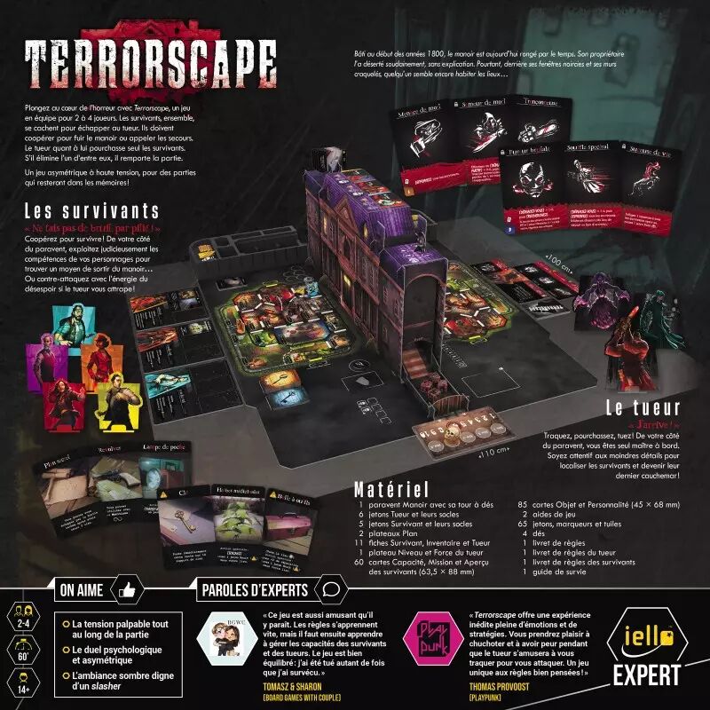 Terrorscape demande une réflexion stratégique et une coopération serrée pour les survivants, contre un adversaire unique dont la gestion des actions est cruciale. Ce mélange génère une expérience immersive, parfois cauchemardesque, toujours passionnante.