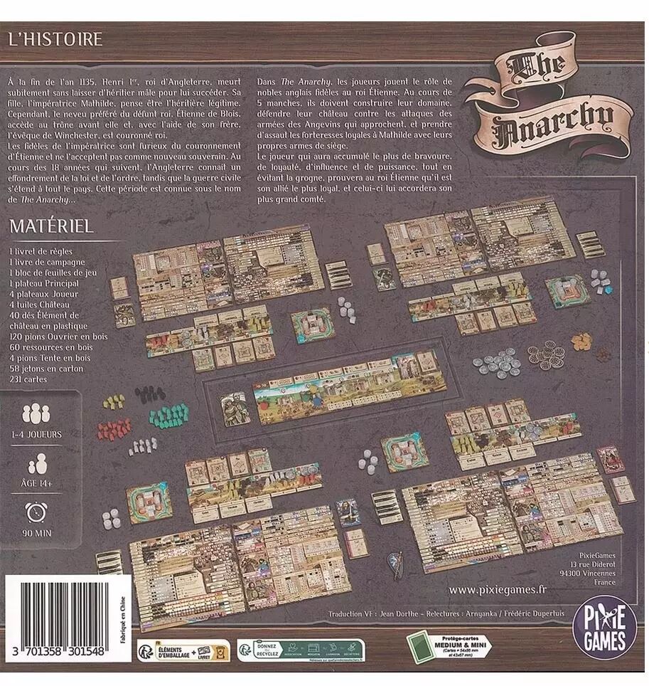 The Anarchy met les joueurs dans la peau de nobles fidèles au roi Étienne, où les décisions pèsent lourd. En cinq rounds, il faudra bâtir son domaine, renforcer ses défenses et gérer au mieux ses ressources fragiles qui périment à chaque fin de manche. L’expérience s’avère dense, mais gratifiante, créant une tension croissante autour de la défense du château face à des attaques toujours plus menaçantes.