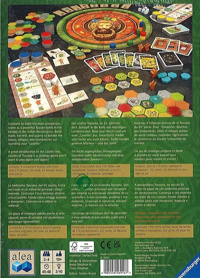 Suite spirituelle des Châteaux de Bourgogne, le jeu "Les Châteaux de Toscane" propose une expérience de jeu plus ludique et épurée que son grand frère, tout en conservant la même profondeur de jeu... Tout pour devenir Culte !