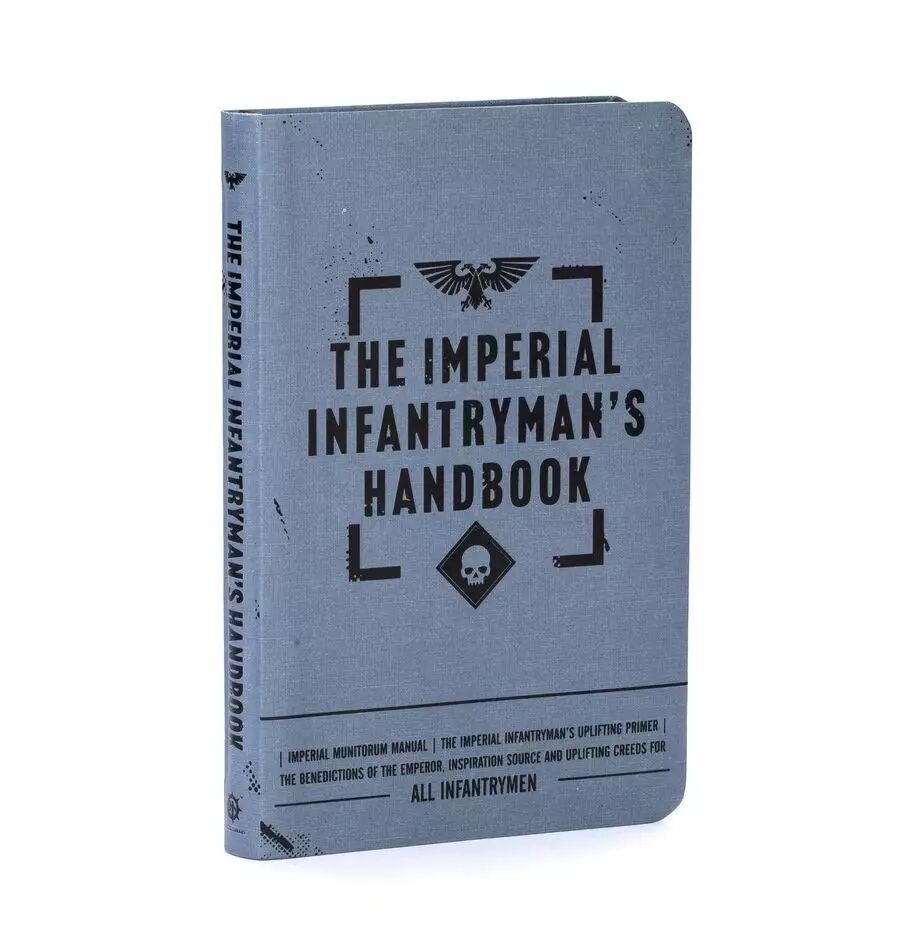 The Imperial Infantryman's Handbook combines the Imperial Munitorum Manual and the Imperial Infantryman's Uplifting Primer, produced by the Departmento Munitorum, to be distributed to every serving member of the Emperor's glorious Imperial Guard. It contains wide ranging and educational information, prayers, litanies, forms, equipment care instructions, tactics, diagrams and illustrations that every member of the Astra Militarum should know and be able to use to their fullest extent at all times, including the heat of battle.