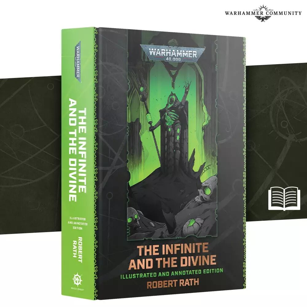 The Infinite and the Divine - Illustrated and Annotated Edition contains Robert Rath's standout Necrons novel, and features an introduction and over 240 boxout annotations from the author, as well as 15 new illustrations. All this is contained within a stunning hardback edition featuring a soft-touch cover with foil details, bright green page edges, and a green ribbon bookmark.