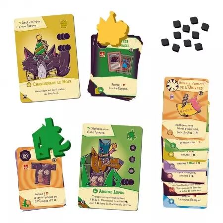 Cette extension apporte 2 nouveaux personnages , chacun avec son propre style de jeu original. Les savoirs magiques interdits de Charouman vous permettront de jouer avec une main de 4 cartes au lieu de 3. A quel point pourrez-vous libérer sa puissance via la construction de son deck ? Arsène Lupus est l'expert absolu du Charbon 14, une nouvelle ressource qui permet aux Agents de se téléporter directement à une Epoque qui en contient. Vous trouverez également un nouveau set de cartes Artefact pour le Gros Deck, amenant notamment une toute nouvelle dimension Trou de vide, pour des effets puissants mais instantanés.