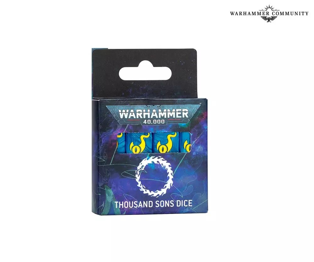Cet ensemble de 16 dés carrés à six faces sur le thème des Thousand Sons est à utiliser dans vos parties de Warhammer 40,000. Les dés sont en plastique bleu nacré avec des marquages jaunes et ils mesurent 16mm de côté. Les faces 1 à 5 ont des marquages traditionnels, et chaque face du 6 est décorée de l'étrange icône de Tzeentch.