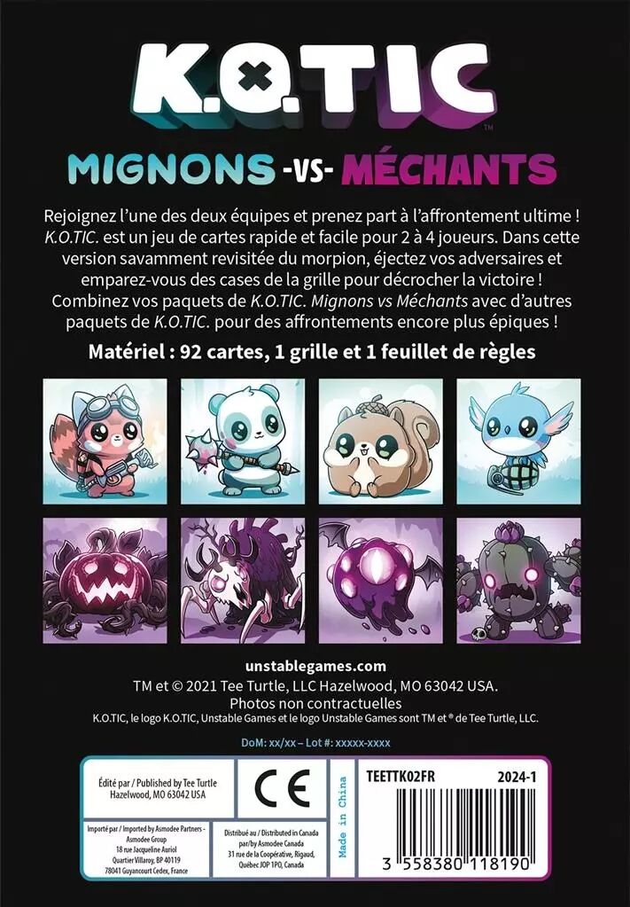 Tic Tac K.O. est un jeu rejouable à l'infini. Vous pouvez combiner les decks Mignons et Méchants avec d'autres decks Tic Tac K.O. pour créer de nouvelles stratégies et de nouveaux défis.