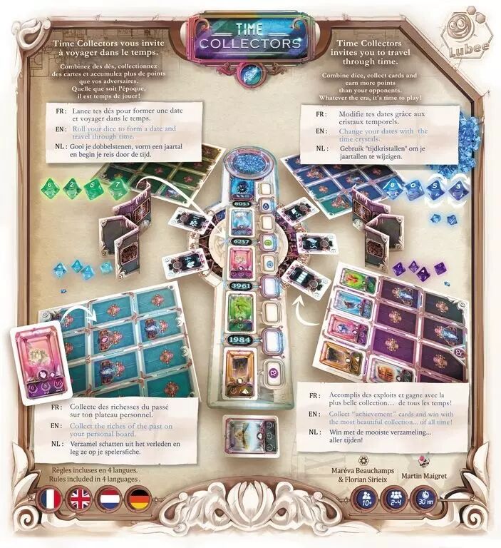 " Time Collectors" invite les joueurs à voyager dans le temps, en combinant 4 dés à 10 faces pour former des dates.