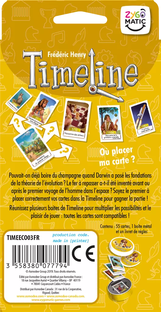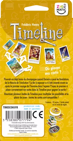 Chaque boîte de Timeline contient 55 cartes et la règle du jeu.