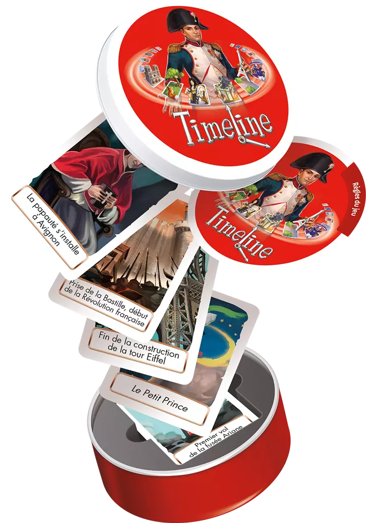 Chaque boîte de Timeline contient 55 cartes et la règle du jeu.
