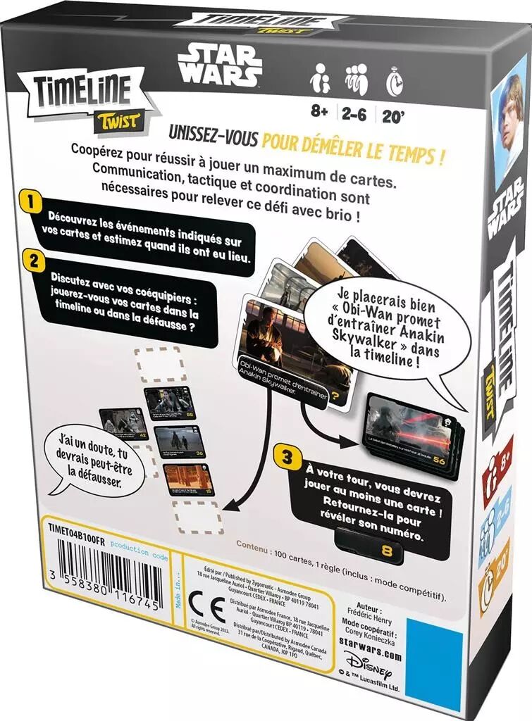 Timeline devient désormais aussi un défi coopératif ! Piochez 35 cartes à chaque partie, puis réfléchissez, communiquez et coordonnez-vous pour les poser dans le bon ordre, tout en défaussant les plus gênantes. Essayez d’obtenir le meilleur score possible à chaque nouvelle partie.