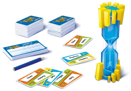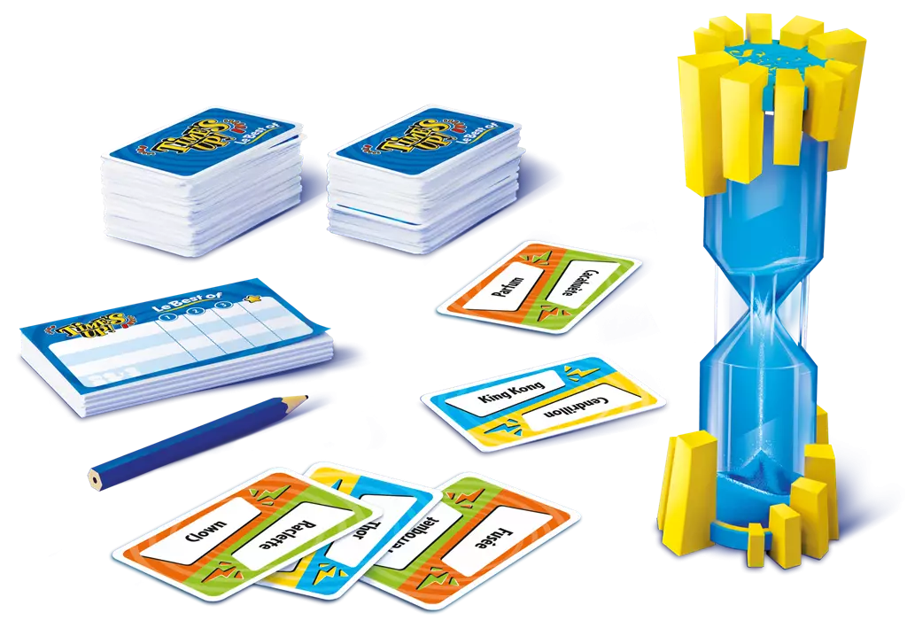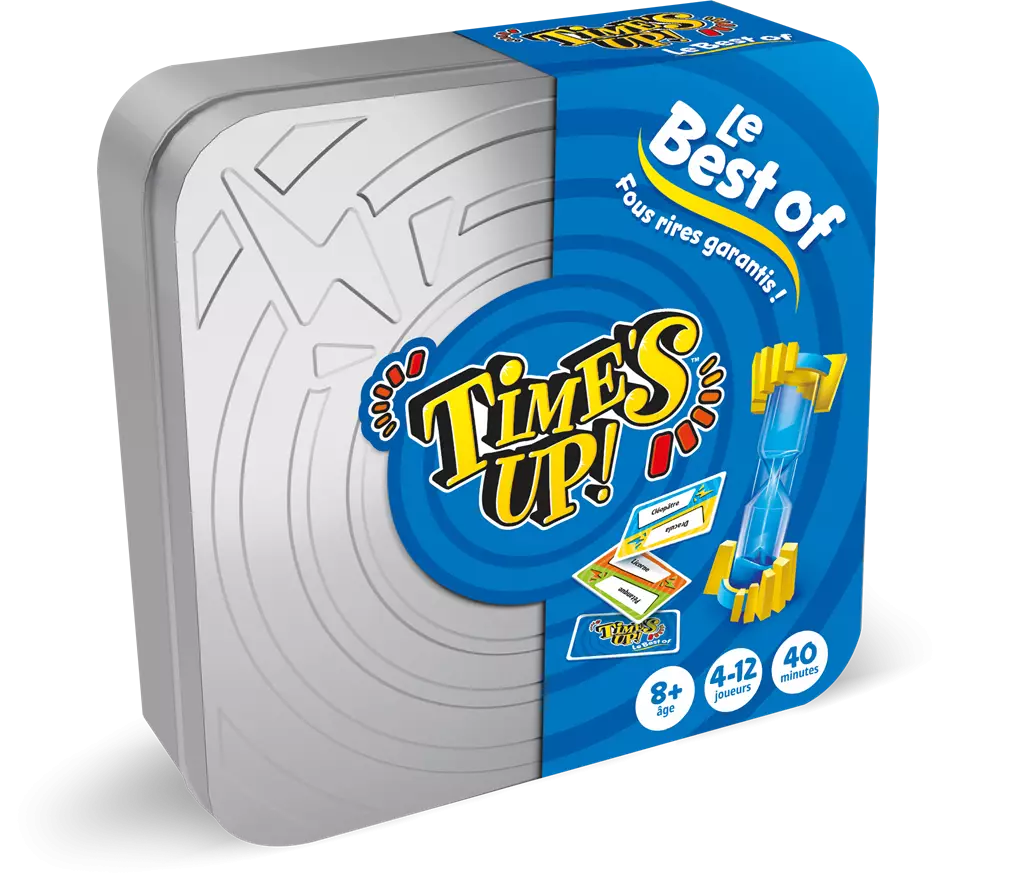 Dans Time's up, faites deviner à votre équipe le plus possible de mots, de personnalités ou d’œuvres, en un temps limité. Pour la première manche, décrivez librement chaque mot à trouver. Sur la manche suivante, reprenez toutes les cartes devinées, mélangez-les et recommencez, mais cette fois n'utilisez qu'un seul mot. Enfin, dans la troisième manche, toujours avec les cartes trouvées à la première, utilisez le mime pour faire gagner votre équipe !