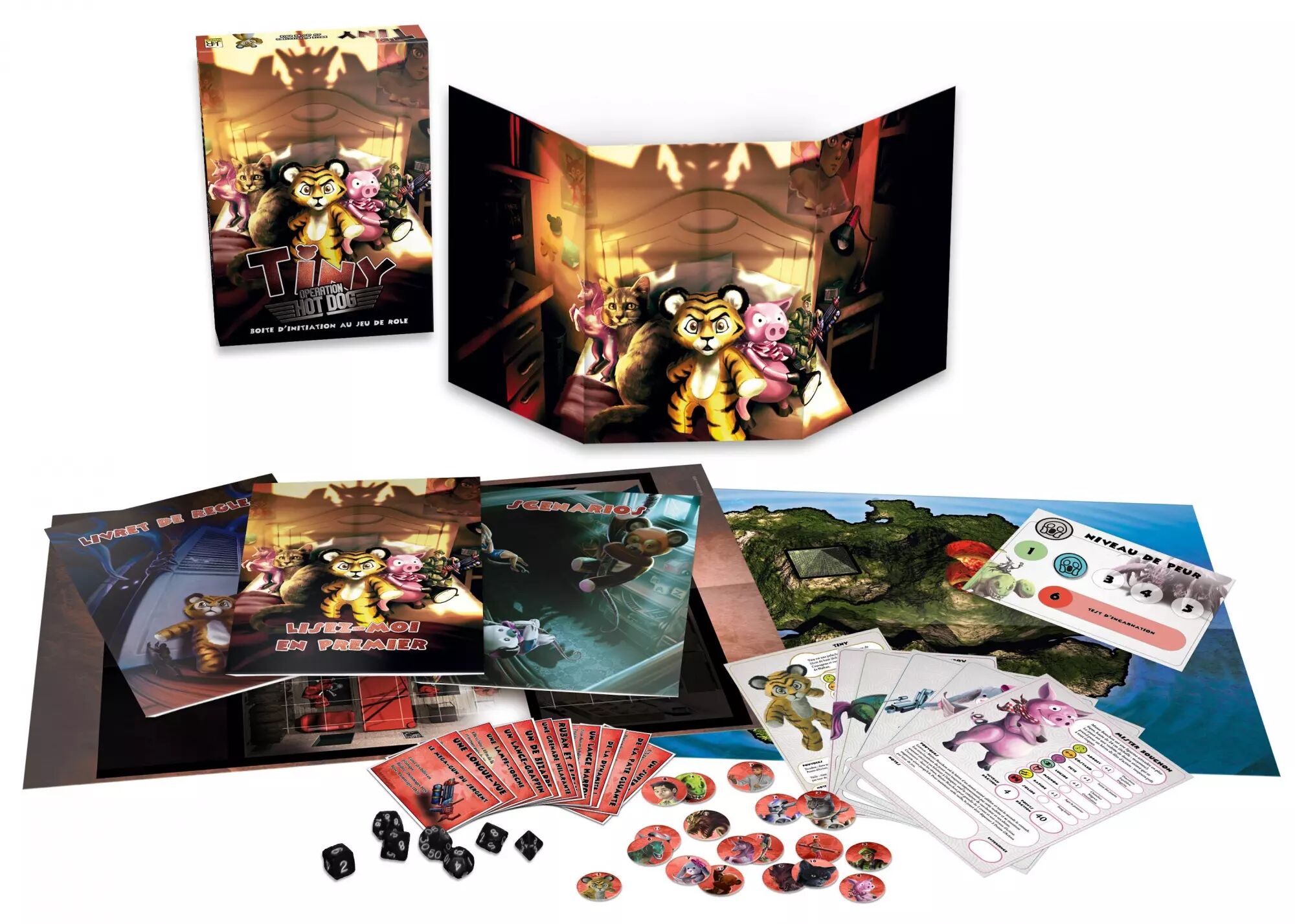 TINY est destiné aux débutants comme aux pratiquants de JDR confirmés, découvrez le jeu de rôle entre amis ou en famille dès 10 ans. La boîte initiation contient tout le nécessaire pour commencer à jouer immédiatement et regorge de matériel : trois scénarios inédits, des plans, cartes, pions, écran, fiches et même un set de dés complet offert.