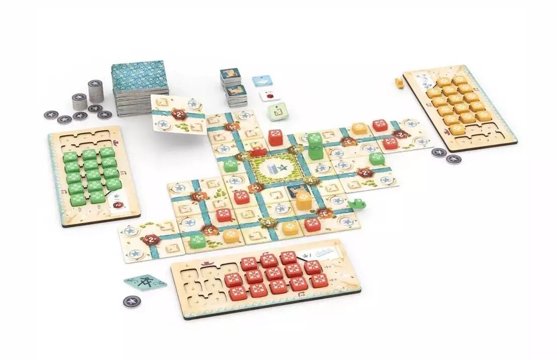 Le jeu alterne expansion de la ville, construction en hauteur et activation des tuiles Marché offrant des gains immédiats. La tension repose sur le timing : quand poser, où empiler, quelle zone prioritiser ? Le scoring final récompense le contrôle des quartiers et canaux, ainsi que les objectifs secrets en mode avancé.