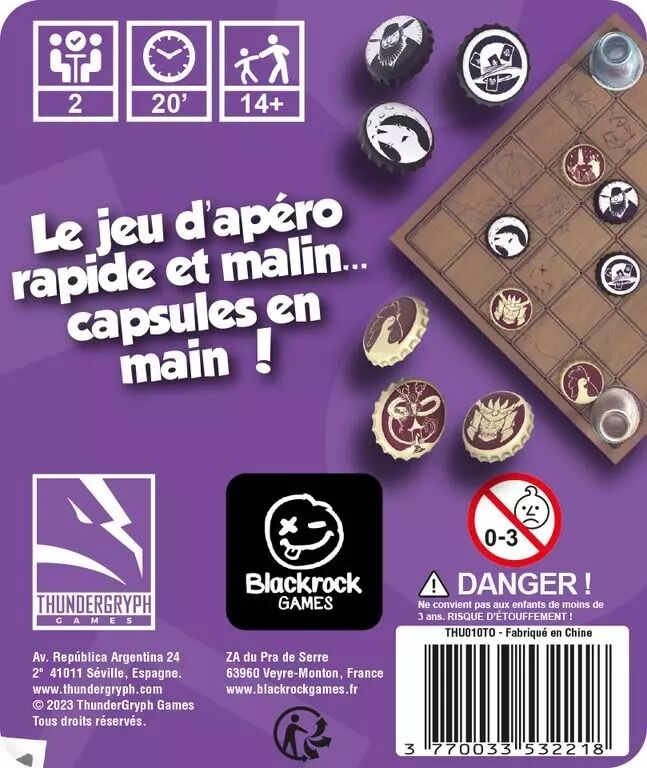 Top Cap est conçu pour les joueurs pressés mais exigeants. En quelques minutes, vous plongez dans un duel cérébral où chaque mouvement compte. Le but ? Recouvrir la bouteille de votre adversaire avec l’une de vos capsules. Simple en apparence, mais diablement tactique une fois lancé !