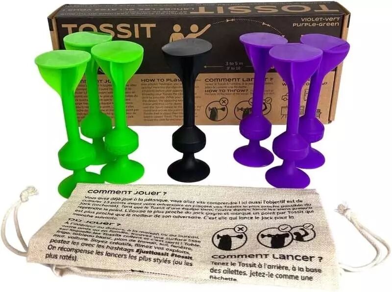 Le jeu TOSSIT est un mix ingénieux et fun entre les fléchettes, la pétanque, et le molkky. Pour jouer à l’intérieur ou l’extérieur, des règles pour des parties en famille et d’autres pour les soirées entre amis. Les fléchettes utilisées sont souples, munies d’une ventouse puissante et résistante pour coller sur de nombreuses surfaces lisses. Conçu en France.