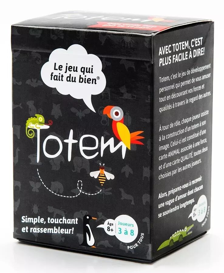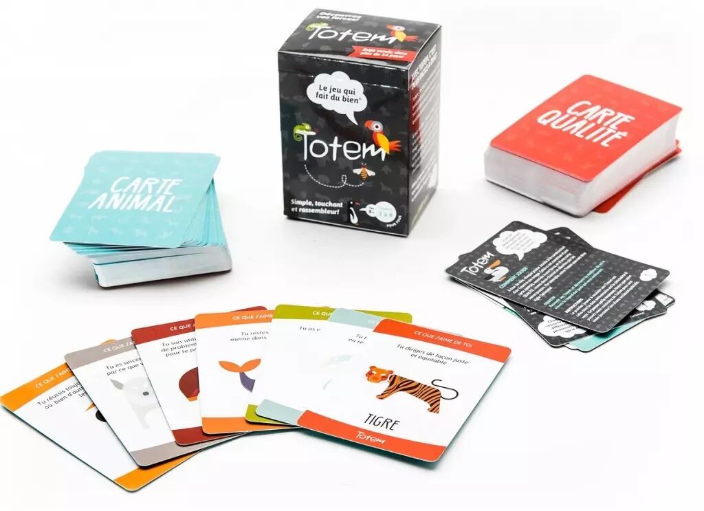 Le premier joueur à recevoir son Totem = prochaine date de fête. Ce joueur est le receveur. Portion ANIMAL du totem. Le receveur distribue 7 cartes à tous les joueurs, sauf à lui-même. Chaque joueur choisit parmi les 7 cartes la force qu’il désire souligner chez le receveur. Chacun place sa carte face cachée au centre de la table. Le receveur regrade les cartes. Il place ensuite les cartes en ordre de préférence faces cachées sur la table, de la force qu’il se reconnaît le plus à celle qu’il se reconnaît le moins. Le receveur retourne une à une ses cartes ANIMAL, en commençant par la force qui lui ressemble le moins. Le joueur qui a donné cette carte ANIMAL s’identifie et doit décrire pourquoi il a choisi cette force. Le receveur continue ensuite à retourner ses cartes une à une.Tous les joueurs expliquent leur choix au receveur. Les joueurs choisissent maintenant parmi les cartes « LA » force dominante du receveur. Cette carte constitue la portion ANIMAL du Totem du receveur. Répétez ces même étapes avec les cartes QUALITÉ. Ainsi de suite pour chacun des participants.