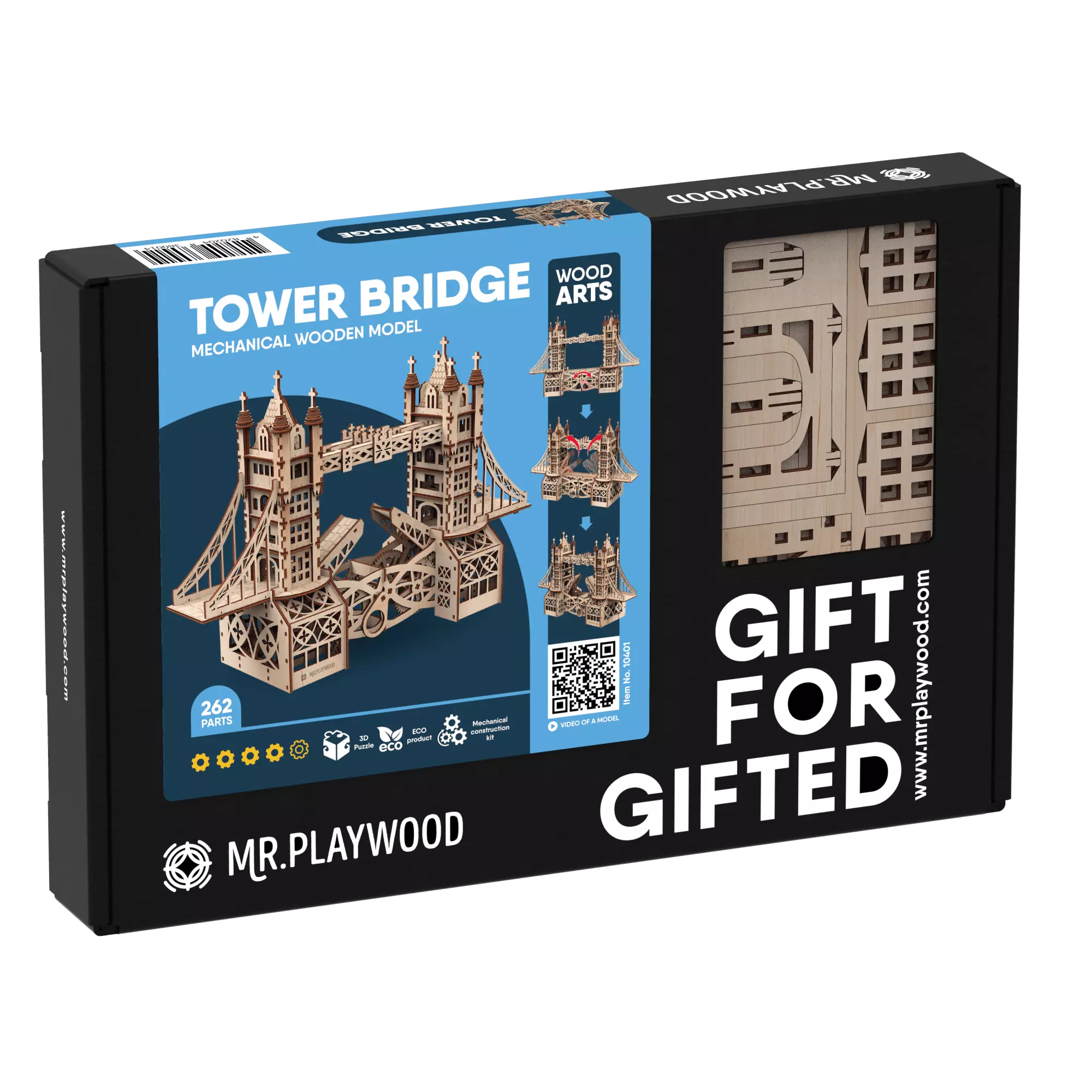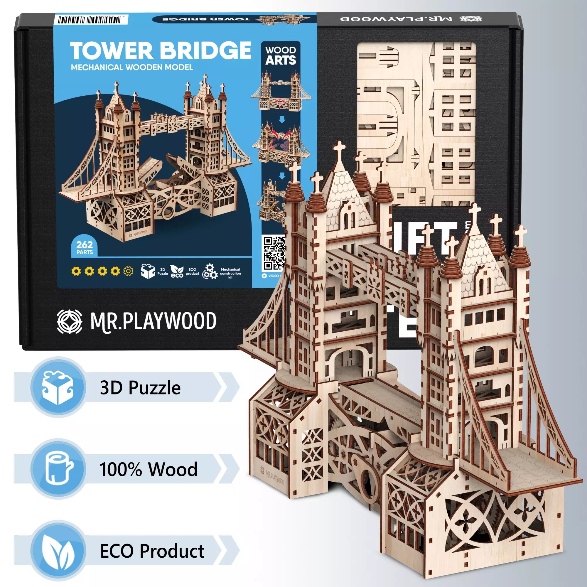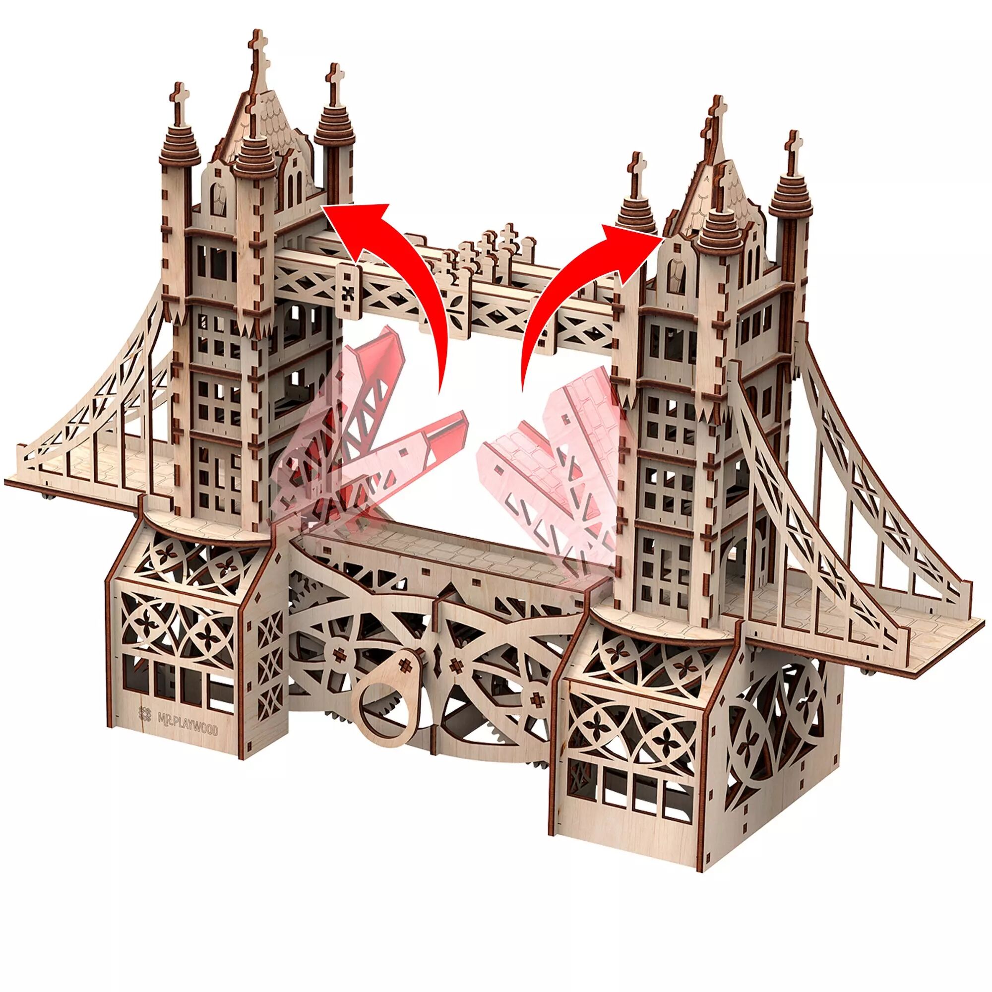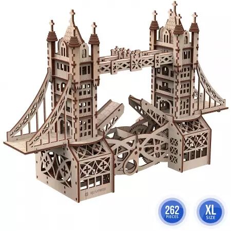 Assemblez le Tower Bridge puis actionnez le pont levis grâce un ingénieux système d'engrenages !