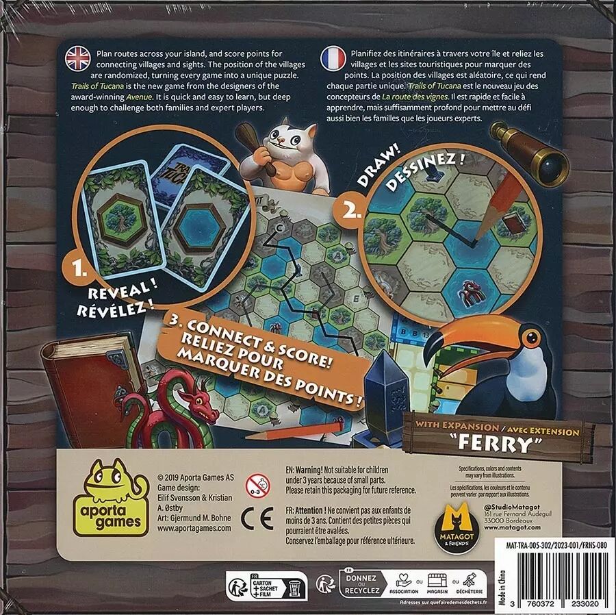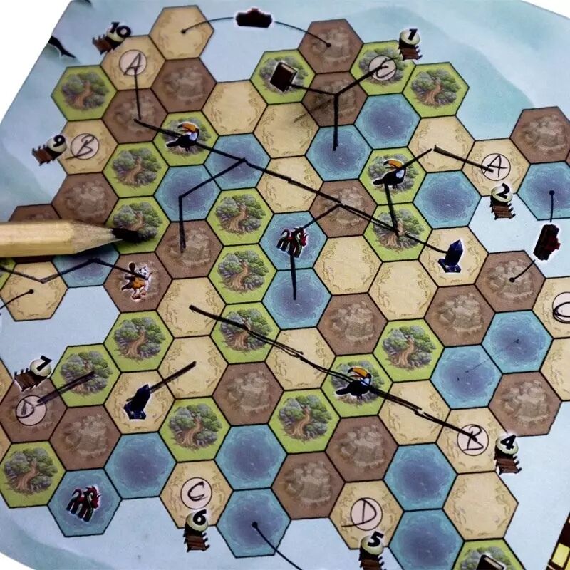 Les joueurs marquent des points en reliant des villages entre eux et en connectant des sites touristiques aux villages. Le premier joueur à relier une paire de villages reçoit des points bonus. La planification stratégique est essentielle pour maximiser vos points et devenir l'explorateur ultime de l'île de Tucana.