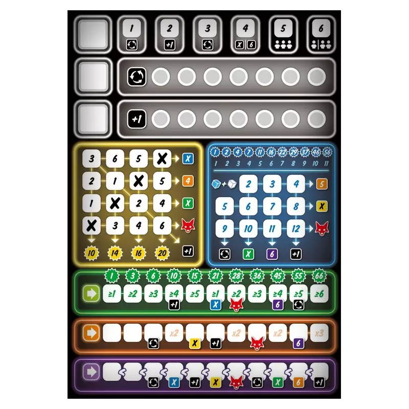 Au fur et à mesure du déroulement de la partie, les joueurs ont la possibilité de débloquer des bonus qui leur donneront la possibilité, s'ils sont ingénieusement utilisés, de remplir davantage leur grille et donc de scorer plus de points. La grille contient de nombreux bonus qui se débloqueront en fonction de son remplissage et qui permettront aux joueurs de :