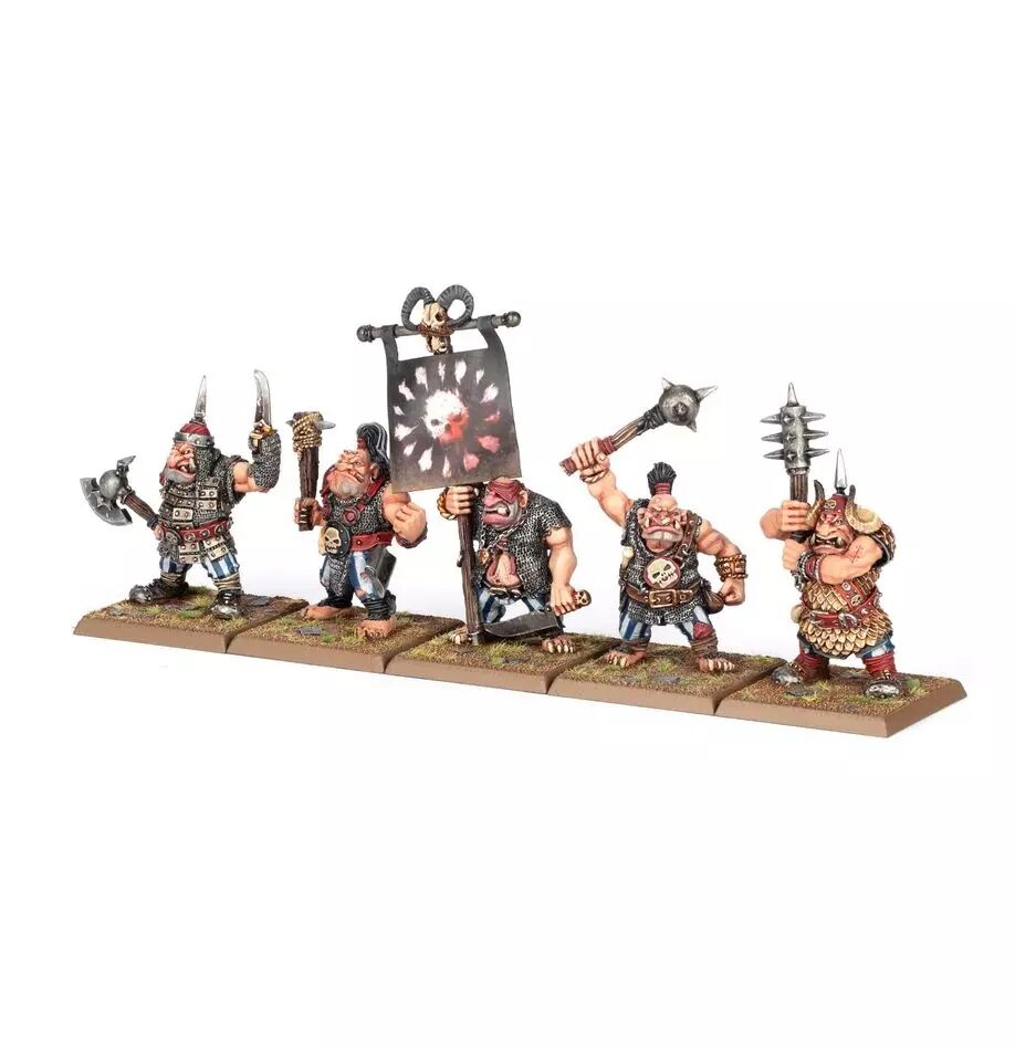 Ce kit en métal permet d'assembler cinq Ogres des Terres Arides, chacun équipés des meilleures armes et armures qu'ils peuvent se procurer grâce à leur vie de mercenaires: l'un manie une arme lourde, un autre un poing d'acier à pointe, et un autre un étendard surmontée d'une bannière ornée de crânes. Ces guerriers sont des vétérans endurcis et des combattants redoutables à part entière. Lorsqu'ils se rassemblent, leur charge est presque inarrêtable et ils écrasent tout ce que leur employeur leur désigne.