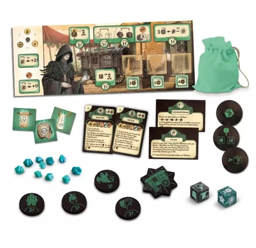 Tu recrutes les compagnons de l'Arcaniste comme personnages individuels avec leurs propres disques d'action et pouvoirs. Le Golem augmente ta capacité de travail dans l'atelier, le Filou excelle au marché et te donne accès à des matériaux spéciaux, le Changeforme t'offre de la flexibilité en déplaçant tes actions, le Spectre débloquerait des effets surnaturels. Chaque compagnon crée une branche stratégique complètement différente. Tu ne lances plus juste des cartes, tu construis une équipe magique avec des synergies réelles.