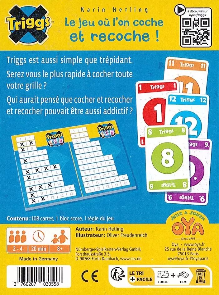Triggs est un jeu convivial et idéal pour des moments de partage en famille ou entre amis. Les parties sont rapides et dynamiques, ce qui en fait un jeu parfait pour les soirées animées.