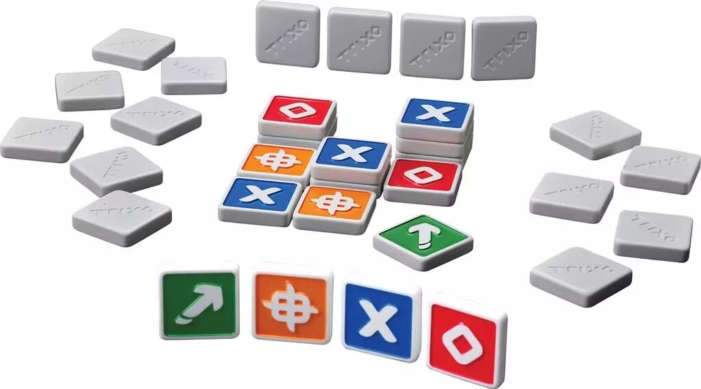 36 pièces (14 pièces «X», 14 pièces «O», 5 pièces Trixo, 3 pièces flèche), 1 sac, 1 livret de règles