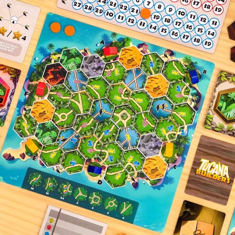 Tucana Builders reprend les principes familiers de la pose de tuiles et les revisite pour offrir une expérience de jeu unique et captivante. Le jeu est facile à apprendre, avec des règles simples et intuitives, mais il propose un niveau de profondeur stratégique qui saura ravir les joueurs les plus expérimentés.