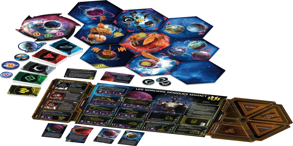L’extension Twilight Imperium : La Prophétie des Rois vous permet d’ajouter de nombreuses nouveautés à vos parties de Twilight Imperium : Quatrième Édition. Sept factions inédites entrent en lice, dont les redoutables Sorciers Géniques Mahact, anciens maîtres de la galaxie. Certaines personnalités se retrouvent en première ligne, apportant leurs compétences exceptionnelles à leurs factions. Dans le sanglant combat pour la domination de la galaxie, les infanteries mécanisées redoublent d’efficacité. Entre les étoiles, la guerre s’étend à de célèbres planètes de la galaxie, et les explorations de nouveaux territoires ont permis la découverte de reliques perdues aux incommensurables pouvoirs.