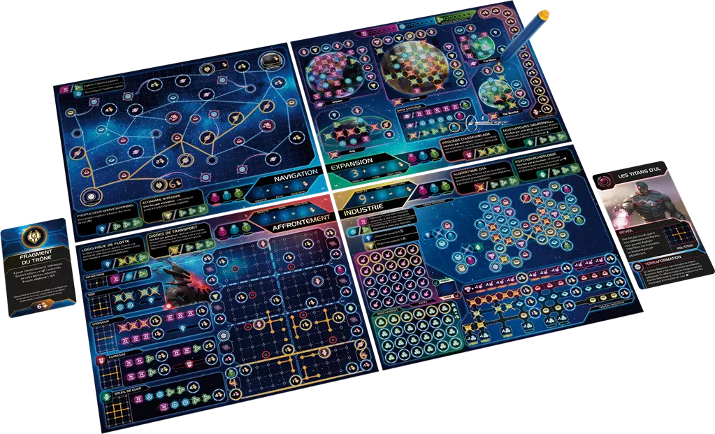 Twilight Inscription offre une expérience différente de tout ce que Fantasy Flight Games a fait auparavant : Avec un pool limité de ressources à votre disposition, vous devrez gérer soigneusement la navigation, l'expansion, l'industrie et la guerre tout en amassant des points de victoire et en gagnant votre droit au trône sur Mecatol Rex. Votre faction deviendra-t-elle les nouveaux dirigeants de la galaxie ? Ou votre empire naissant tombera-t-il dans l'obscurité ? Tout peut arriver dans ce jeu stratégique rejouable à l'infini !