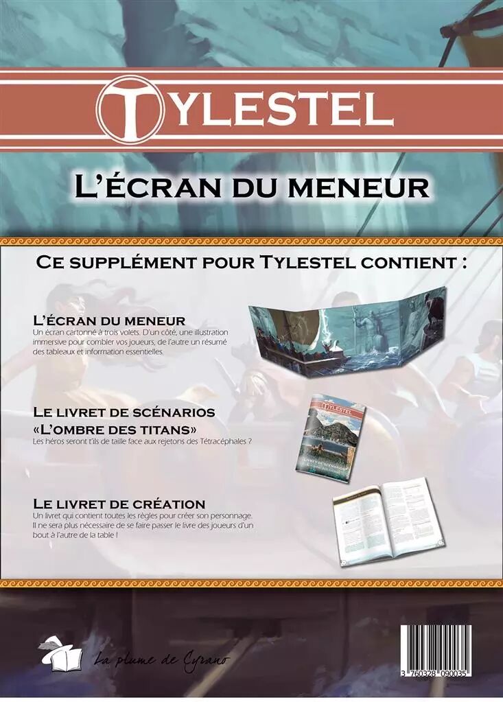 L'écran du meneur : Un écran cartonné en trois volets. D'un côté, une illustration immersive pour combler vos joueurs, de l'autre un résumé des tableaux et information essentielles.