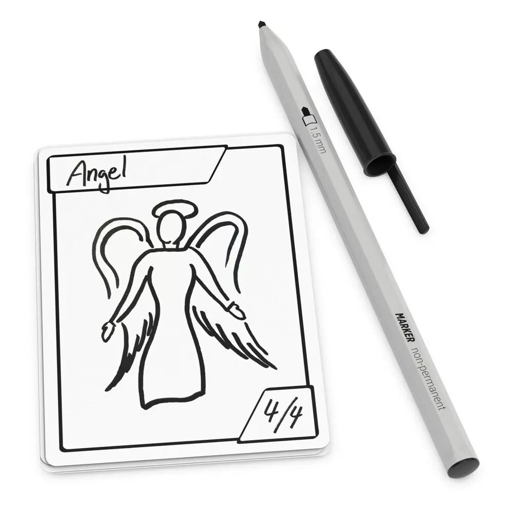 - Sleevable : utilisez un stylo soluble à l'eau pour des dessins plus résistants ou pour sleever les jetons. Pour les réutiliser, il suffit de les essuyer avec une serviette humide ou quelques gouttes d'alcool à 90°.