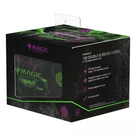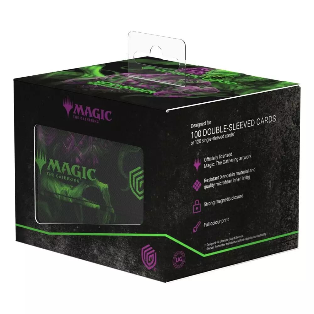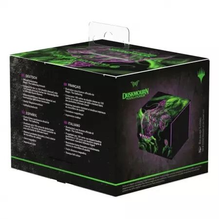Les Sidewinder 100+ Xenoskin sont imprimés en couleur avec des illustrations sous licence officielle de Magic: The Gathering. Les boîtes à cartes sont fabriquées en Xenoskin résistant et ont un intérieur en microfibre de haute qualité. Les Sidewinder offrent de la place pour 100 cartes (double-sleeve) ou 120 cartes (single-sleeve) - et sont parfaitement assorties à l'Omnihive 1000+ Xenoskin de la série Duskmourn !