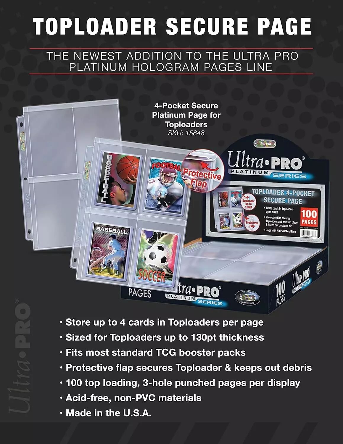 Peut contenir des cartes dans des toploaders jusqu'à 130 pt.