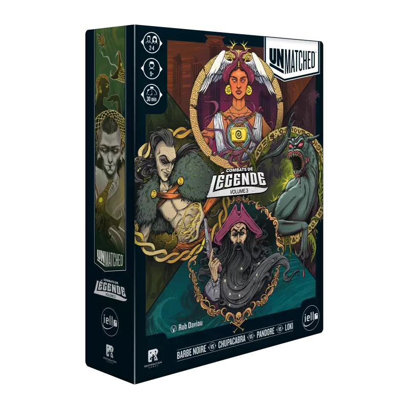 Unmatched : Combats de Légende Volume 3 est un jeu d’escarmouche qui permet d’opposer des personnages emblématiques, chacun ayant son propre style de combat avec ses forces et faiblesses. Le jeu de base propose quatre héros, mais de nombreuses extensions permettent de diversifier toujours davantage les combats.