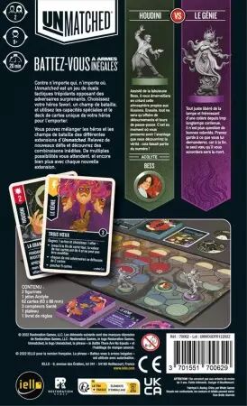 Avec ses quatre personnages emblématiques et son plateau de jeu recto verso, Unmatched propose des sensations de jeu uniques permettant de vivre l’intensité du jeu d’escarmouche sur un format bien plus compact et accessible. Proposant un fun immédiat et permettant de découvrir les capacités des héros au fil des batailles, Unmatched génère des parties ultra intenses et toujours variées.