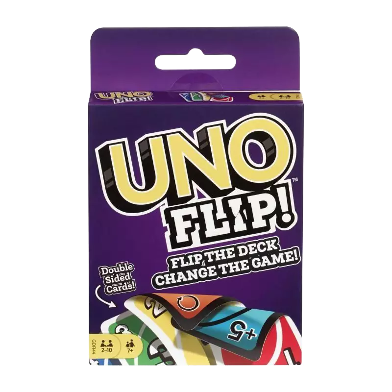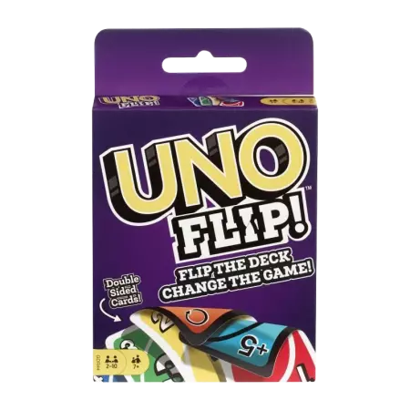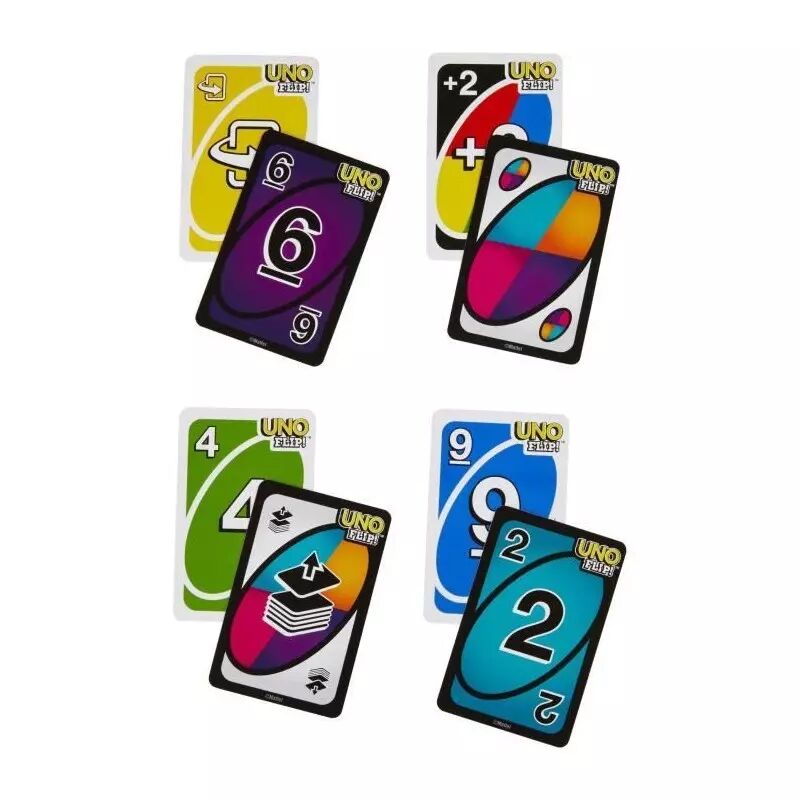 Le côté "Blanc" se joue comme le UNO classique mais le côté "Noir" a des pénaltités beaucoup plus fortes ! Piochez 1 carte devient Piochez 5 cartes, Sotez 1 tour devient Sotez le tour de tout le monde ! Seul la carte "Flip" peut faire changer le côté des cartes jouées.