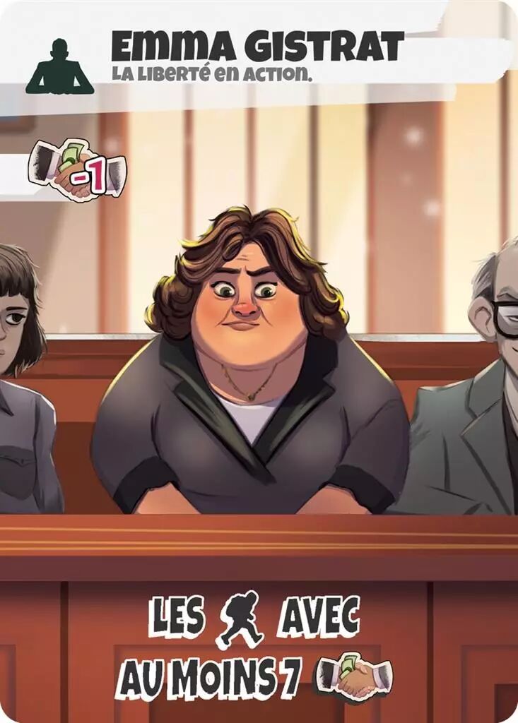 Le verdict final dépend du total d’années de prison accumulées par les preuves encaissées et les jurés posés. Chaque partie est rythmée, tendue et drôle, avec une forte rejouabilité grâce aux talents asymétriques des crapules et aux nombreux jetons Balance offrant des effets uniques.