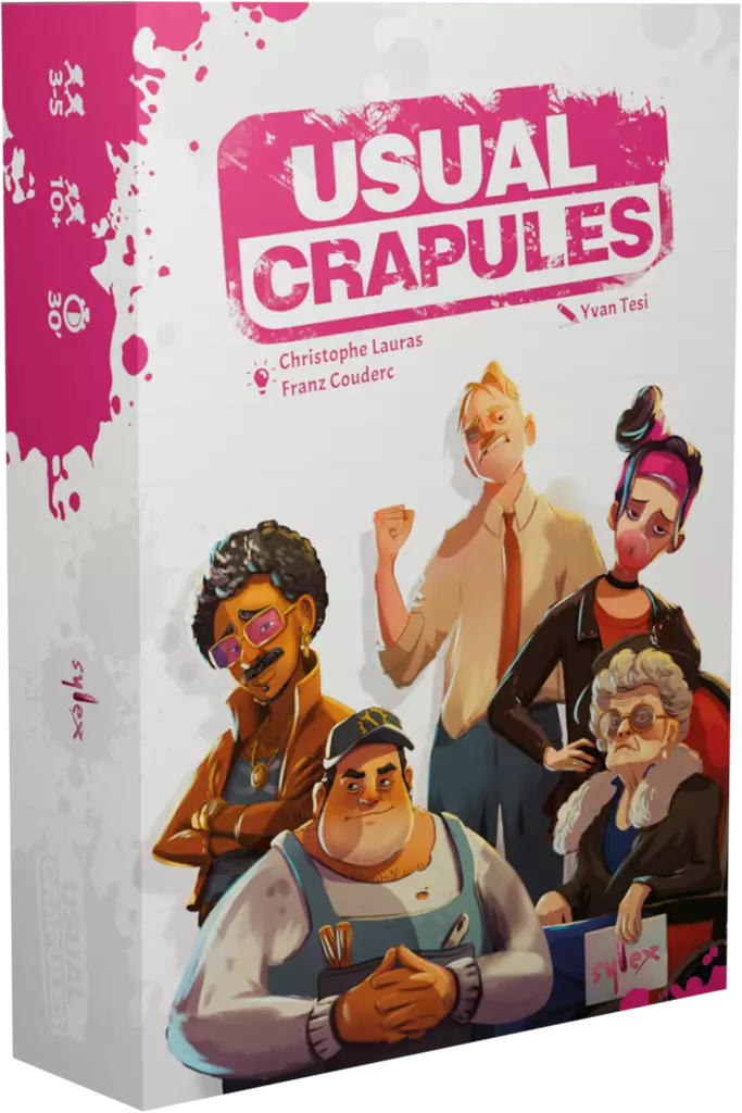 Usual Crapules vous embarque dans une ambiance de procès survolté entre anciens braqueurs. Après un casse raté, les joueurs se retrouvent devant le juge : celui qui écopera de la peine la plus courte pourra aller déterrer le magot avant les autres.