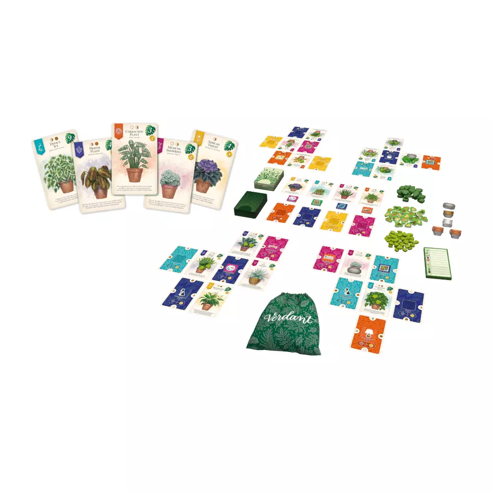 À chaque tour, vous sélectionnez une paire adjacente d’une carte et d’un jeton, puis vous utilisez ces éléments pour construire un tableau de cartes toujours plus grand qui représente votre maison. Vous devez garder à l’esprit divers objectifs pour tenter d’accroître la verdure des plantes en établissant des correspondances spatiales et en utilisant des jetons d’objets pour effectuer diverses actions de soin. Vous pouvez également développer vos compétences en matière de «main verte», ce qui vous permet d’entreprendre des actions supplémentaires pour prendre soin de vos plantes et créer l’espace le plus douillet qui soit !