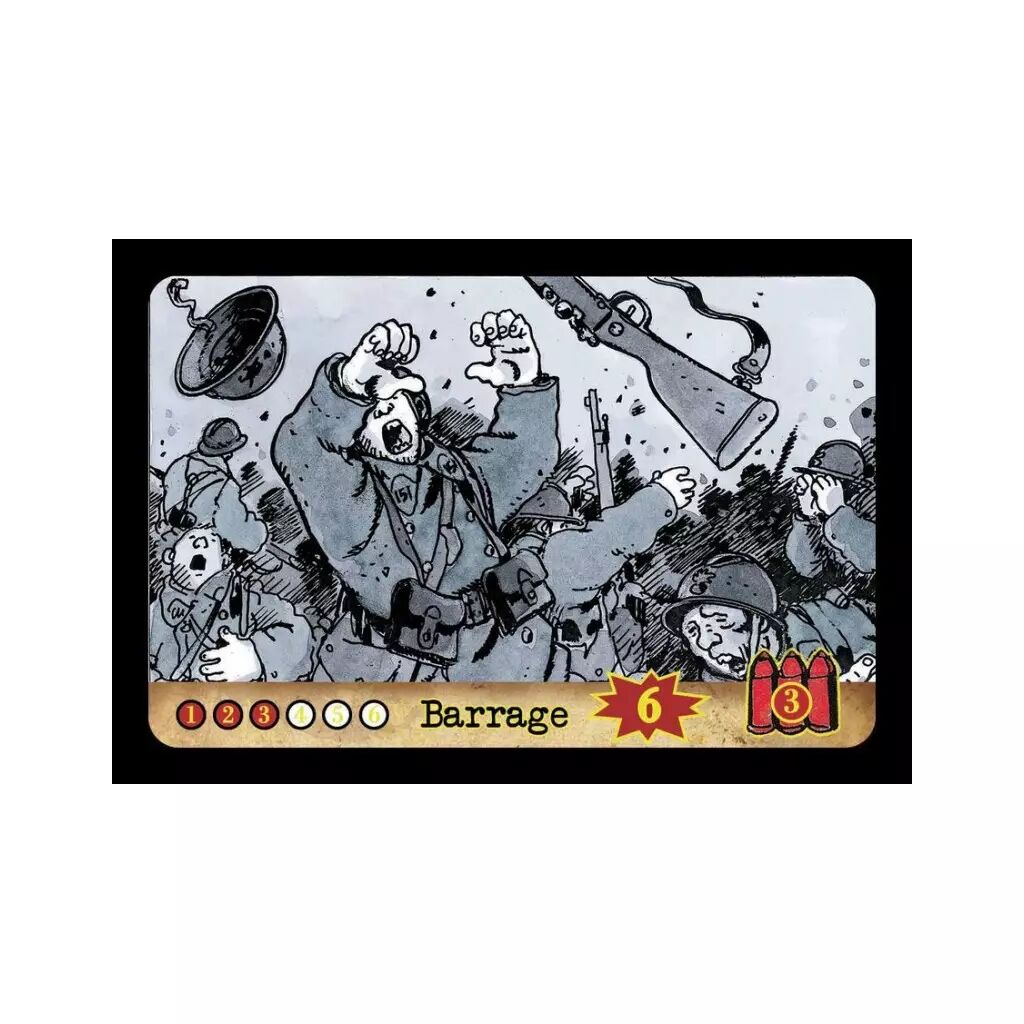 Verdun Enfer d’Acier est un wargame piloté par cartes, où chaque action – bombardement, assaut, construction de tranchées ou renforts – dépend de la main du joueur. Les règles sont simples à assimiler : on joue une carte pour son effet ou pour ses points d’action, on lance les dés pour les combats, et on gère les pertes selon la situation. Trois scénarios permettent de varier la durée et l’intensité des affrontements, avec une montée en puissance progressive.