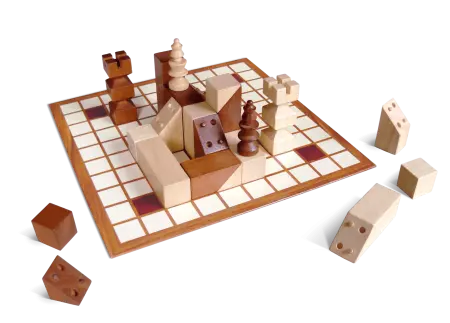 Ce jeu en bois est un jeu de réflexion et de stratégie où le but du jeu pour remporter la victoire est de déposer son pion "Seigneur" sur la "Tour" adverse. Pour se faire les joueurs disposeront de pièces "Blocs" et "Escaliers" pour construire des chemins en 3D afin de pouvoir déplacer leur "Seigneur" vers la Tour adverse.