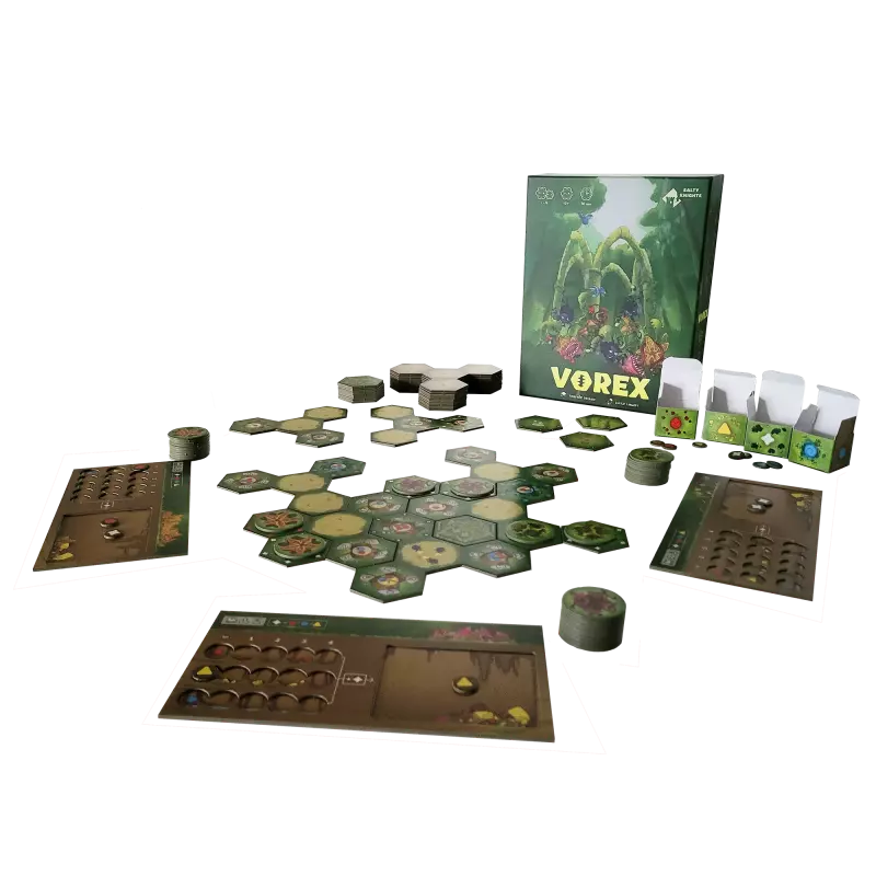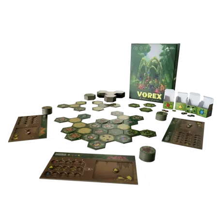 Vous devrez mettre en place un moteur de production suffisant, bloquer les autres joueurs, construire le plateau en fonction de vos objectifs et placer vos fleurs judicieusement pour gagner une partie de Vorex.