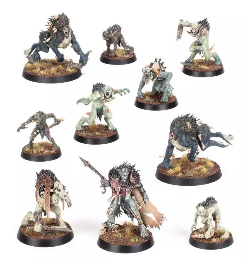 Ce kit plastique permet d'assembler une bande complète de Dépeceurs Royaux, à utiliser dans les parties de Warcry. Menée par un abhorrant appelé Maître-dépeceur Royal, cette bande de pisteurs déments et dégénérés arpente les Royaumes Mortels en quête de monstres à abattre. Les Pisteurs Goules, plus petits et plus mobiles, débusquent la proie, tandis que les Écuyers Goregoules aux casques en os se ruent sur la victime affaiblie. Les Barons Dépeceurs et les Chiens d'Abattoirs apportent soutien et vitesse, ce qui permet à la bande d'abattre même les proies les plus redoutables. Ces figurines peuvent également être utilisées dans les parties de Warhammer Age of Sigmar à l'aide des règles gratuites disponible en téléchargement sur le site de Warhammer Community.