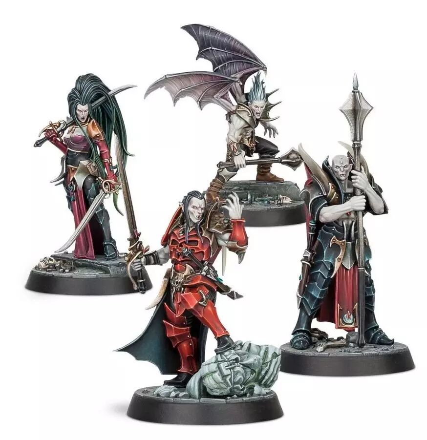 – La Cour Écarlate – quatre sinistres vampires, tous aussi gracieux, rapides et mortels les uns que les autres. Ces figurines à emboîter sont en plastique rouge sang, peuvent être assemblées sans colle et comprennent des socles scéniques